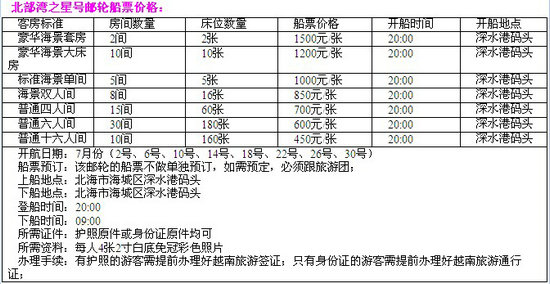 相關(guān)路線:北海、越南浪漫郵輪五天四晚游(身份證)
